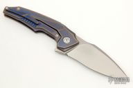 This Muscle flipper by Custom Knife Factory is a Tashi Bharucha design. It features a stonewash finished, M390 blade with swedge and flipper. The handle is comprised of milled, anodized and tumbled titanium with a matching tip up clip over tumbled titanium backspacer. Stainless lockface insert. Dead center blade seating, crisp detent and rock solid lock up. Includes padded and zippered case and COA dated 06/16. Numbered #27 on backspacer. Knife is in excellent condition with no signs of use or carry.