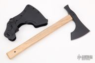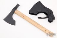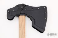 The Model 2 is a robust hammer poll tomahawk with an aggressive 4.125" cutting edge. Combine that with a straight handle makes it a well balanced tool that offers incredible cutting capability. In addition to the sharpened main edge, the Model 2 has a true hammer at the back of the head making it a great companion around camp. The bearded design allows for a high grip, facilitating more accurate fine motor skill work. The Model 2 features a black powdercoat finish for corrosion and wear resistance. Included is a bottom-eject, molded kydex sheath and low-ride M.O.C. straps for belt carry.