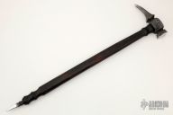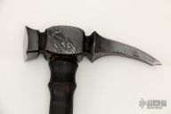 This Italian Warhammer by Enzo Iron is forged traditionally from Vegas Forge Random Damascus and fully functional. Has a flamed hickory handle with a forged Damascus spike at the bottom of the handle. New from maker at the 2022 LVCKS. This thing is cool. We got 3 like this, so they may differ slightly from the picture, but trust me, they are all COOL!