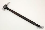 This Italian Warhammer by Enzo Iron is forged traditionally from Vegas Forge Random Damascus and fully functional. Has a flamed hickory handle with a forged Damascus spike at the bottom of the handle. New from maker at the 2022 LVCKS. This thing is cool. They are COOL!