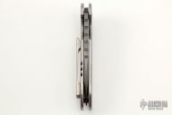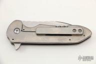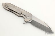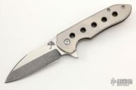 This Framelock by Rainy Day Knives features a two-tone finish drop point blade with notched thumbrest and flipper tab. The handle is comprised of an orange peel titanium frame, and matching titanium tip up clip. Anodized titanium posts. Comes with COA. Has a couple light scratches, otherwise excellent condition.