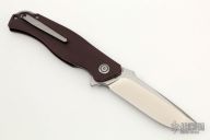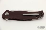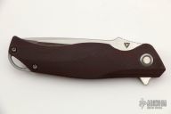 - Bohler M390 blade steel in a drop point shape and satin finish.