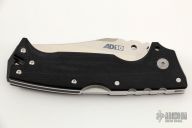 If you're planning a big game hunt, a dangerous expedition, or an exciting adventure and want to carry a high-performance folding knife that wont draw unwanted attention look no further than Andrew Demkos AD-10. Resembling Andrews massive 4-Max, but reduced in size and weight, the AD-10 features an ultra wide ground blade that terminates in a sturdy (yet innocuous) drop point. Ground thin at the edge and honed to razor sharpness, the AD-10 delivers unprecedented cutting, shearing, and piercing power in a sub 4-inch blade but remains remarkably resistant to bending, breaking or chipping. The handle of the AD-10 is likewise strong and user friendly, with heat-treated, full-length aluminum liners, 3D machined G-10 scales, and oversized pins and bolts; it fits snugly and securely in the hand due to its precise contouring and integral finger guard. No folder would be complete without a reliable locking mechanism, so we have incorporated Andrews famous Tri-Ad lock. Its been proven over time to be unsurpassed in strength, shock resistance and durability, and offers unrivaled protection for your irreplaceable fingers. And, to assure lightning quick deployment and convenient carry, we have equipped the AD-10 with an ambidextrous thumb stud and dual pocket clips.