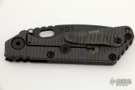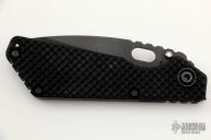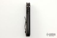 This SNG framelock folder by Mick Strider features a black blade and a dimple pattern black G-10 and flamed titanium frame and tip up titanium clip. Includes a "Lock Bar Stabilizer" for maximum reverse lock retention. Nice detent, lockup and blade seating. New from the 2022 LVCKS.