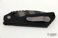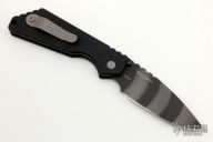 This Pro-Strider SNG by Pro-Tech and Strider Knives features a tiger stripe blade with notched thumbrest. The handle has a black aluminum frame with blasted hardware and blasted stainless steel tip up clip. Comes with original box and papers. #13 of 60 from Blade Show 2018. Excellent condition.