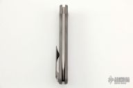 This Impinda by Chris Reeve Knives features a tumbled drop point blade with nail nick. The handle has a bead blasted titanium frame and tip up clip, stainless steel spring. Comes with original box, sheath and papers dated April 17, 2019. Excellent condition.