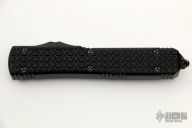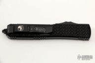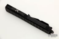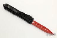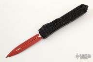 This Ultratech OTF automatic by Microtech features a D/E red blade. Black aluminum contoured frame with black tip down stainless steel clip. Dated 11/2021 and s/n 6139. Excellent condition. Includes original box and papers.