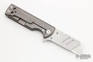 The CHUB (Chaves Handy Utility Blade) Flipper from Ramon Chaves features a replaceable utility blade. The handle has a green micarta scale, stonewashed titanium frame and a reversible titanium skull pocket clip. Comes with the original box and a second titanium pocket clip.  Excellent Condition.