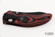 This Elishewitz design button lock folder from Hogue Knives features a black upswept blade with dual thumb-studs. The handle has black/grey/red G-10 frame with safety. Has black stainless steel pocket clip. Comes with zipper case. Excellent condition.
