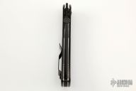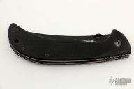 The Emerson Persian features an upswept black blade, black G10 scales over aerospace grade titanium liners. Notches on thumbrest, lock, and rear of handle. #0721. Has a few light scuffs, otherwise excellent Condition.