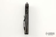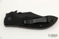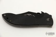 This Emerson CQC 16 features a black coated blade and black G10 scales over titanium liners, black stainless steel clip. Notched thumbrest and lock. Wave feature. Has been used, carried and resharpened, has scuffs and scratches, otherwise good user condition.