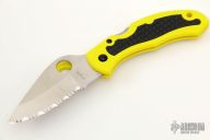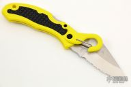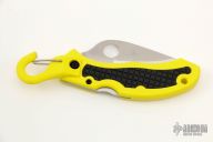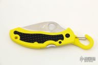 Spyderco's award-winning Snap-It was an innovative cutting tool that traded the signature pocket clip for a snap shackle with a spring closure. Popular with climbers, tradesmen and outdoorsmen, the shackle allows the knife to be suspended from a carabiner, D-ring or similar platform for immediate access. Long discontinued, the Snap-It is now back and better than ever with a 100% rust-proof H1 steel blade. It's tough fiberglass reinforced nylon (FRN) handle proudly features the high-visibility yellow color of the Salt Series and is complemented by the original design's black Kraton rubber insert panels. A sturdy lockback mechanism locks the blade securely when open and, like all the knife's other metal hardware, is also completely immune to corrosion.