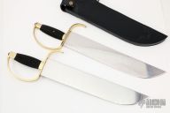 Still amazingly popular with Martial Artists and collectors alike, these iconic Chinese Butterfly Swords are carried in pairs that are cleverly nested together so they appear to be one sword in the sheath. But when they are drawn, they can be separated and wielded in both hands with lightning speed! Our interpretation of these classical blades are 15" long and 2 5/8" wide. Their pronounced D shaped guards have a long forward quillon for deflecting and trapping opposing weapons. The Butterflys handsome hardwood handles are covered with braided silk cord to provide a secure and comfortable grip. The perfect gift for Chinese Martial Arts practitioners, and a fine addition to any blade-lovers collection!