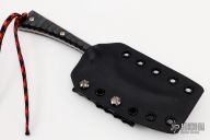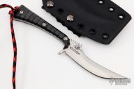This Persian EDC by Richard Derespina features a hand rub satin finished blade with notched thumbrest and jeweled flats, .135" blade stock and .999" blade depth, full tang construction. The handle has black G-10 scales. Comes with a kydex sheath. Excellent condition; a few light scratches on blade.