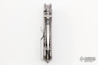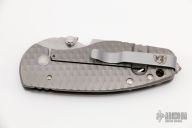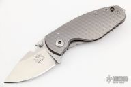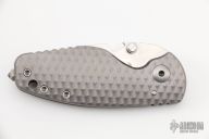The DPx Gear HEAT knife is a smaller version of the HEST folder, but it doesn't sacrifice strength for size. It features the same brutal, rugged feel and performance, while taking up a bit less space. This model has a 3D machined diamond pattern 6Al4V grade 5 titanium handle and a stonewashed Niolox steel blade. The DPx HEAT folder is a collaboration of Lion Steel Knives and Robert Young Pelton of World’s Most Dangerous Places. Comes with original box and papers. Excellent condition.