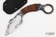 This Nosaf Karambit by BladeTricks is a light weight .123" thick 6150 steel. It is a combat knife with epoxied wool wrap. Nice feel in hand. Comes with a kydex sheath. Excellent condition.
