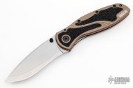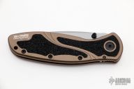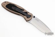 This 1670BRNSG2 Blur from Kershaw Knives features a composite drop point, recurved blade with swedge, dual ramped thumb studs and notched thumb rest. The handle is comprised of a brown aluminum frame with non slip inserts over black barrel spacers. Lanyard hole in pommel. Tip up or down reversible black stainless steel clip. Knife opens quickly with the "Speedsafe" assisted opening mechanism. Excellent condition. Includes original box and papers. This model has been discontinued. 982 of these were made.