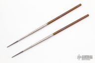 Feed yourself and your pride of ownership with these exquisitely crafted titanium chopsticks. Designed and engineered by world-renowned custom knifemaker Alan Folts and manufactured under the Foltsum™ brand, these chopsticks are beautifully crafted from solid 6AL 4V titanium stock. Their two-piece construction allows them to be conveniently carried when not in use, yet assembled in seconds thanks to a precision threaded joint. Machined in painstaking detail, they feature three different surface finishes, including a bead blasted area near the tip for a secure grip on food, a satin-finished center section, and a rich color-anodized handle section. Machined accents at the top and center add both a touch of style and a thoughtful grip texture that complements their perfect balance.Remarkably strong and lightweight, these elite eating utensils are also 100% corrosion resistant, completely food safe, hypoallergenic, and easily cleaned with ordinary soap and water. They come complete with a ballistic nylon carry pouch with dedicated pockets for all four pieces and a heavy-duty Velcro® closure.
