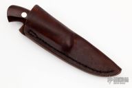 This model 3 Little Dude by George Herron features a mirror polished blade with .177" blade stock and .953" blade depth, full tapered tang construction. The handle has cocobolo scales with stainless steel pins and black liners. Comes with a brown leather sheath. Has #1623 on the tang and sheath. Excellent condition.