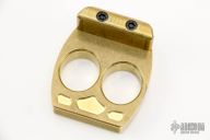 The XL KnuckSLAP™ is a unique personal-defense weapon that combines the best elements of traditional metal knuckles and the classic palm sap—a lesser-known weapon that consists of a weighted pouch held in the palm by a leather strap that fits around the hand. It can be used to punch, slap, pinch, and crush, and is far more versatile than ordinary metal knuckles.The body of the XL KnuckSLAP™ is precision machined from 6061-T6 aircraft-quality aluminum or brass 1/2 inch in thickness, 3.95 ounces (Aluminum) 12.20 ounces (Brass) and features two finger holes designed to fit the middle and ring fingers of average-sized hands. This aligns the XL KnuckSLAP™ with the centerline of the forearm for maximum energy transfer when the textured non-slip face is used to punch. The palm lobe of the XL KnuckSLAP™ serves as the “stand-off” for the knucks—transferring the impact shock of punching comfortably into the fleshy part of your palm. It is also the secret of the XL KnuckSLAP™'s expanded functionality. When the hand is held open, the lobe can be used to slap with devastating effect—just like a palm sap—and to catch and parry an attacker’s strikes, destroying his hands. It also transforms simple grabs into vise-like pincers that generate excruciating pain.The XL KnuckSLAP™ concept was conceived by noted personal-defense authority and Black Belt magazine Hall of Fame member Michael Janich. After roughing out the design in a wooden model, he turned it over to 5x5 Combat Solutions, who used their state-of-the-art CAD skills to translate it into a sophisticated, modular, two-piece design. New from maker.