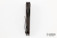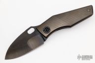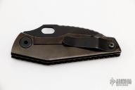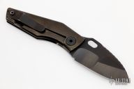 This custom SJ75 Baby Huey by Mick Strider features a fluted black DLC coated titanium frame with file work along back spacer. Tumble finish with black DLC coating blade with file work along spine and nightmare grind. Nice function, strong lock up, nice detent and blade seating. Excellent Condition. Comes with a zippered case.