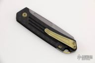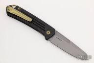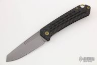 This OEM Slim is a Richard Rogers Design and features a bead blasted blade. The handle is milled carbon fiber with anodized titanium backspacer, hardware and tip up clip. Nice detent, lockup and blade seating. Comes with original packaging and brown leather slip sheath. Excellent condition.
