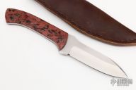 This Monkey Edge Exclusive by Aaron Frederick and John W Smith features a satin finished blade with .162" blade stock and 1.159" blade depth, full tang construction with rag micarta scales. Comes with a brown leather sheath. Excellent condition.