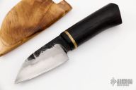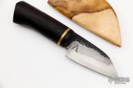 This Mini Utility EDC by Last Knives features a nice hamon and forge finished flats, .126" blade stock and .896" blade depth, hidden tang construction. The handle has a buffalo horn guard with an ebony wood grip and a brass spacer. Comes with a Teakwood sheath and COA. New from maker.