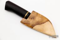 "I start making knives in the middle of 2017 just for fun. After I lost my job at the end 2017 I started to focus on making knives full time. I was learning from other makers and blacksmiths practicing and testing many types of steels. I primary use W2, O1, and sup9a (5160), secondary D2 (for corrosion resistance) and M2 for highly wear resistance. I chose W2, O1, and sup9a primary because its very easy to get very fine grain in the steel. That means it is very easy to sharpen but long lasting edge retention and upgraded toughness level. Those are the characteristics loved so much by chefs and hunters that need clean cutting knives. For handle material I like natural exotic wood and usually horn, also fossil ivory with non ferrous metal like brass, copper and some bronze."
