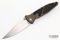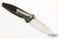 This Socom Elite by Microtech has a satin finished clip point blade with dual thumbstuds and notched thumbrest. The handle is composed of an OD Green aluminum with non-slip inserts. Dated 10/2011 #032978. Stainless steel tip up pocket clip. Excellent condition.