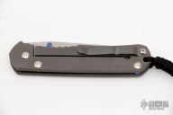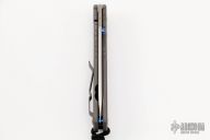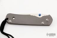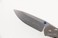 This Large Sebenza by Chris Reeve features a tumbled FLAT GROUND blade with single anodized thumbstud. The frame is bead blasted titanium with matching tip up clip. Nice detent, lockup and blade seating. Excellent condition. Comes with box and papers dated April 18, 2001. The blade is hand signed and dated 4/19/2001. Has a couple of light scuffs, otherwise excellent condition. We think there were only 400 produced like this.