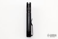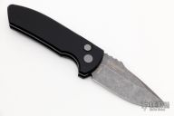 The Left Handed Short Bladed Rockeye, or SBR for short, is a compact version of the outstanding full sized Rockeye Auto. Both knives are designed by Marine Corps knife designer Les George, who’s ergonomic hard use knives have been faithfully translated to automatic versions by Pro-Tech. The SBR features a compact design, with a 2.5″ blade that’s built for a multitude of cutting tasks. A pocket milled spine adds extra grip and depth to the design. The SBR features solid black hard coat anodized handles, blasted hardware, black DLC coated deep carry clip, and a stonewashed blade. Comes with original box and papers. New from maker.