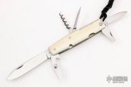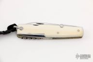 This vintage Multi-Blade Slipjoint by E Renaud features mirror polished blades. Has walrus ivory covers, fileworked nickel silver liners, stainless steel springs. Has a few light scratches, otherwise excellent condition. Comes with a zippered case.