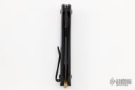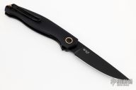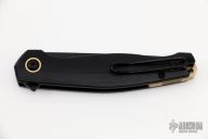 This Sonoma by Giant Mouse features a PVD drop point blade with notched thumbrest and flipper tab. The handle has a black g10 scale and titanium frame with anodized titanium pivot collar and backspacer. Matching reversible tip up pocket clip.  Includes the original box.  New from maker.