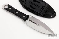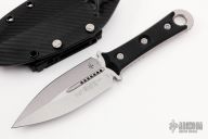 This SBD by Microtech Knives and Borka Blades features a stonewash finished double edged blade with .188" blade stock and 1.556" blade depth, full tang construction with black G-10 scales. Comes with the original kydex sheath, box and papers, dated 12/2021 s/n 1498. New condition.