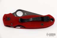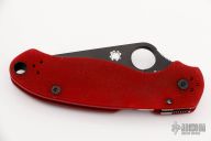 St. Nick's Knives is very excited to bring you our second exclusive knife! Like with our Delica, this knife has been in the works for quite some time now and we are thrilled to be able finally to bring it to you awesome people! Our Delica had many firsts to bring to the table and our Para 3 is no different. This is the first Para 3 to be offered with a red G10 handle as well as a CPM 4V steel blade. Spyderco has only ever used 4V on their fixed blade knife, Mule Team, so this is the first folder to feature it. If you aren't familiar with 4V, CPM 4V is a powder metal tool steel with an outstanding combination of properties including high impact toughness and very good wear resistance. The black hardware along with the black blade really make the Red G10 stand out. We think this is one awesome looking knife and we hope you do too. Grab one today before they are gone!