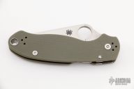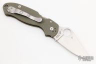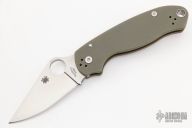 This Para 3 by Spyderco features a satin finished clip point blade with thumb hole and notched thumbrest. The handle is comprised of G10 scales over nested steel liner and stand-offs. The steel pocket clip is 4 way adjustable. Includes original box and paperwork. Excellent condition.