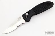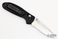 This 556S Mini Griptilian by Benchmade features a stonewashed drop point partially serrated blade with dual thumb studs and notched thumbrest. The handle has flack FRN scales, stainless steel sub frame and black backspacer. The black stainless steel tip up clip is reversible for right or left hand carry. Excellent condition. Comes with original box.