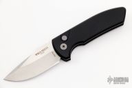 The Protech Knives SBR (Short Bladed Rockeye) is a utilitarian, compact, every-day-carry version of the Les George iconic Rockeye model, retaining the classic design in a smaller package. The SBR has the same American innovations as the Rockeye, featuring modern materials, high tech manufacturing, advanced coil spring mechanism, and quality American production. This version of the SBR has a two-tone, stonewashed/satin finished S35VN stainless plain edge blade, black anodized aluminum handles and bead blasted hardware. Comes with original box and papers. FPR #271. Excellent condition.