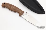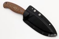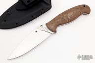 This Temperance 2 from Spyderco features a satin finished drop point blade with notched thumbrest, 5/32" blade stock and 1 1/2" blade depth, full tang construction. The handle has brown canvas micarta scales and a lanyard hole at the butt. Comes with original kydex sheath with belt clip. Excellent condition.