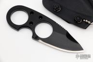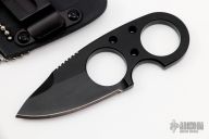 Designed for personal carry and offers the maximum design for a strong finger-locked grip. Made from D2, black finished blade, this .251" inch thick knife is extremely durable and will last for generations. Includes a custom Kydex neck sheath designed to securely lock the knife in place. Excellent condition.