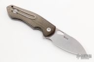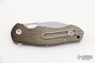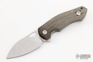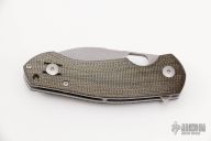 The handle fills even larger hands well, due to the nicely rounded scales and good ergonomics. Speaking of the handle, we chose to blast the black G10 and canvas Micarta for grippyness and great feel.