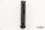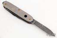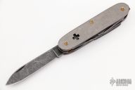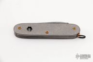 This modified Pioneer has been disassembled, all blades and springs have been stonewashed and acid etched. Stonewashed titanium covers been added and the stainless steel liners have been replaced with copper liners. Excellent condition.
