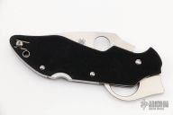 The Introvert’s full-flat-ground VG-10 stainless steel blade features Spyderco’s Trademark Round Hole and a Fred Perrin-inspired integral index-finger hole that anchors the knife into the user’s hand for exceptional grip security. The leading edge of the larger hole also functions as a flipper, allowing the blade to be swiftly opened with a stroke of the index finger.