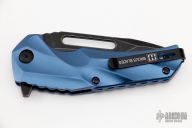 This Reloader model has a blue aluminum handle and an acid stonewashed blade.