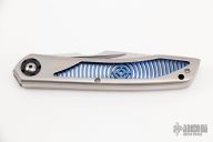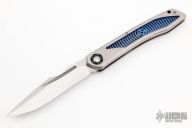 This Collab Slipjoint #4 by Gerry Mcginnis and Michael Burch features a hand rub satin finished clip point blade with fullers. The handle has an orange peel finish titanium frame with milled anodized pattern, carbon fiber pivot collars, stainless steel spring, lanyard hole at the butt. Comes with zippered case and COA dated 04/20. Has half-stop, flush in all positions. Excellent Condition.