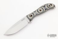 This RAD by the Busse features a satin finished drop point blade, .160" blade stock, 1.135" blade depth, full tang construction with black/tan G-10 scales and a lanyard hole. New from maker.