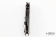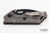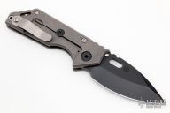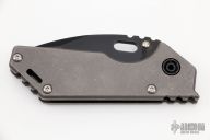 This 3/4 AR by Strider Knives features a black PVD coated blade with notched thumbrest and thumbhole. The handle has a tumbled and anodized titanium frame with a stonewashed titanium tip up clip. Nice detent, lockup and blade seating. Excellent condition.