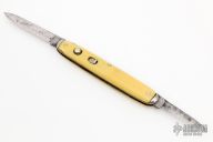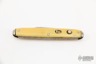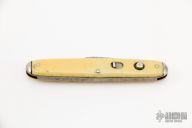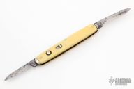 This double auto by Schrade was made between 1909-1916, it features two blades both with their own push button and safety. The handle has nickel silver bolsters, acrylic/celluloid scales, brass liners and steel backspacer. Has some patina, pitting and light scratches, otherwise good condition for its age. US Patents FEB 13,06, FEB 26,07 on the ricasso. This knife is over 100 years old.