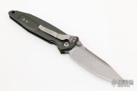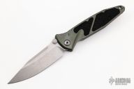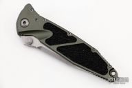 This Socom Elite manual linerlock folder by Microtech Knives has a stonewashed blade with notched thumbrest and dual thumbstuds. Has an OD Green aluminum handle with non-slip inlays, tip down blasted stainless steel clip. Serial number 5808 and dated 08/2019. Comes with original box and papers. Excellent condition.